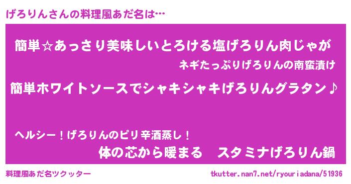 | 女子向けラノベタイトル風あだ名 | 『げろりん様がみてる』『闇のげろりん』 |