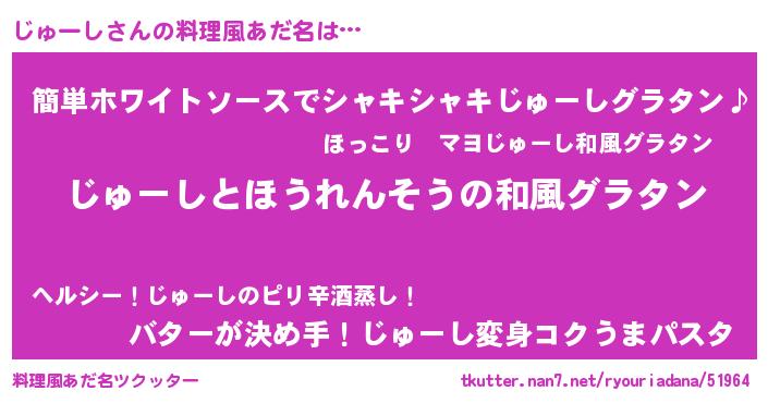 | 意味不明あだ名 | 『ニラ科じゅーし属』『自称じゅーし』 |