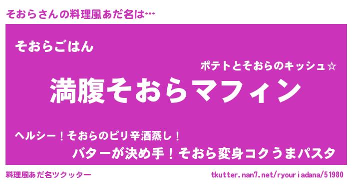 | 意味不明あだ名 | 『永久保存そおら』『めかぶ科そおら属』 |