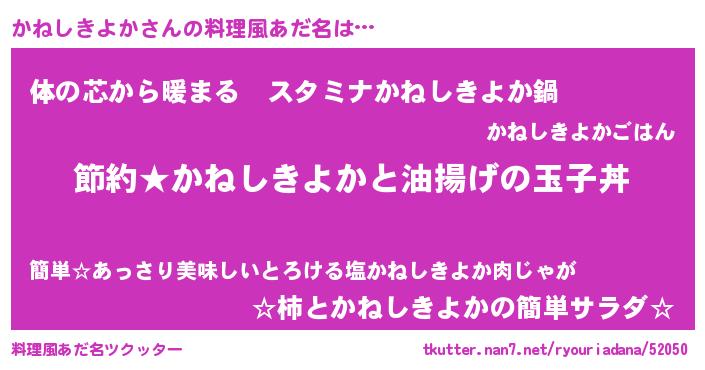 | 男性向けラノベタイトル風あだ名 | 『カネシキヨカアートオンライン』 |