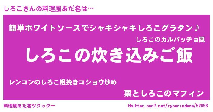ヘコむあだ名 | 『しろ太郎』『しろこ(笑)』『つくし』 |