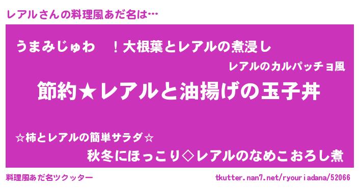 | ファンタジー風あだ名 | 『レアフェル』『エターナルレアルー』 |