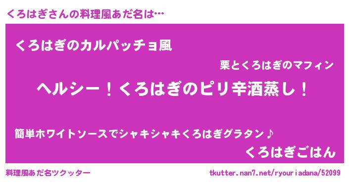 | 男性向けラノベタイトル風あだ名 | 『Re:くろはぎから始める異世界生活』 |
