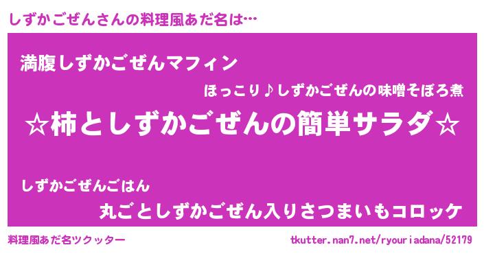 | ヘコむあだ名 | 『しずかごぜん(震え声)』『しずにゅー』 |