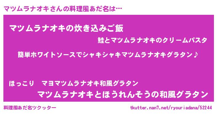 | ポケモン風あだ名 | 『ヒマツムラナオキ』『メロマッツ』 |