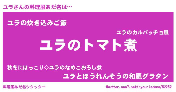 | ヘコむあだ名 | 『ユラお』『ユラふぇ~』『ユラ(笑)』 |