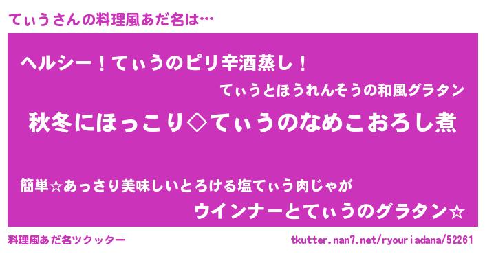 | 意味不明あだ名 | 『自称てぃう』『てぃうフォーエバー』 |