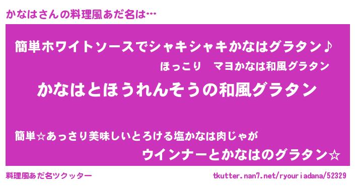 | 男性向けラノベタイトル風あだ名 | 『転生したらかなはだった件』 |