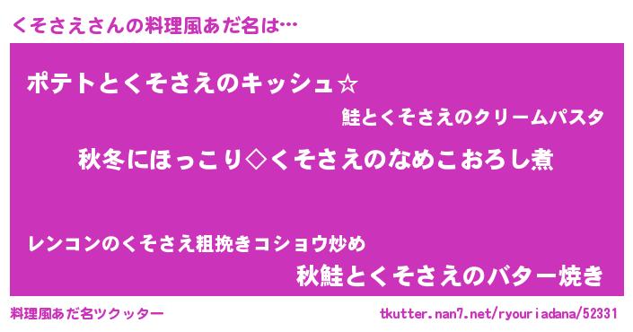 | 男性向けラノベタイトル風あだ名 | 『くそさえに滅ぼされるだけの簡単なお仕事です』 |