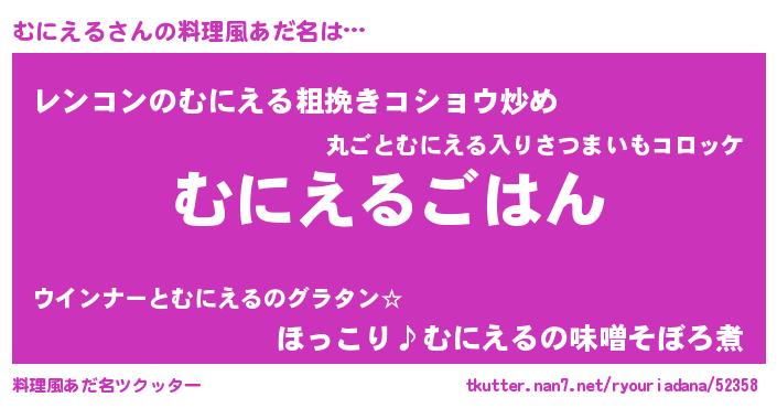 | 意味不明あだ名 | 『しいたけ科むにえる属』『自称むにえる』 |
