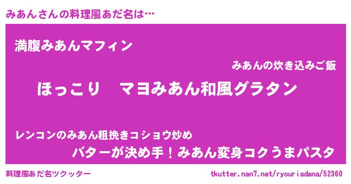 | ヘコむあだ名 | 『みあん(小並感)』『みあを』『豆乳』 |