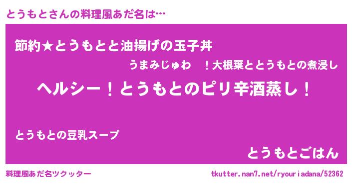 | 男性向けラノベタイトル風あだ名 | 『Re:とうもとから始める異世界生活』 |