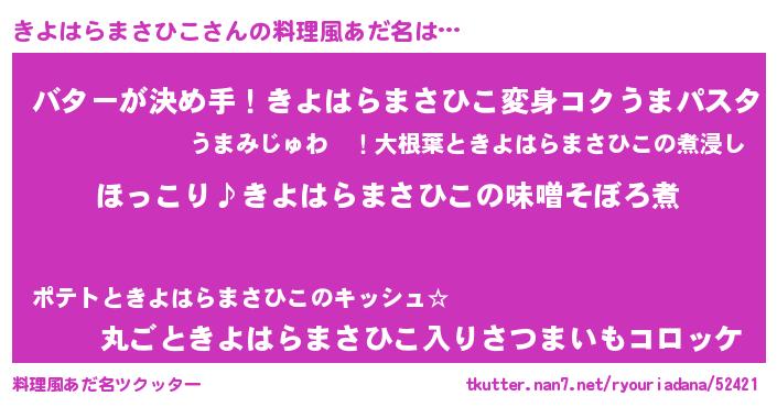 | 胡散臭い通販商品みたいなあだ名 | 『必ず成功するブレスレット…その名も「きよはらまさひこ」』 |