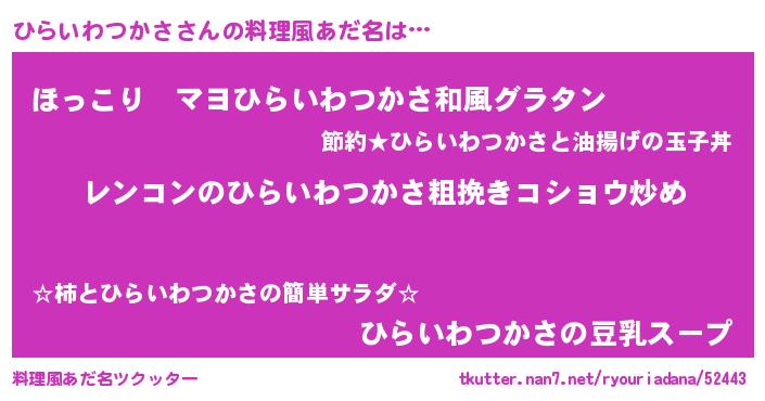 | 意味不明あだ名 | 『自称ひらいわつかさ』 |