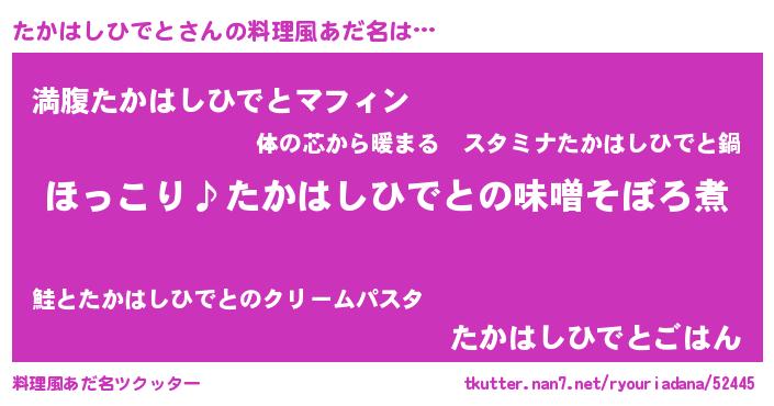 | ヘコむあだ名 | 『たかもー』『たかはしひでと(笑)』 |