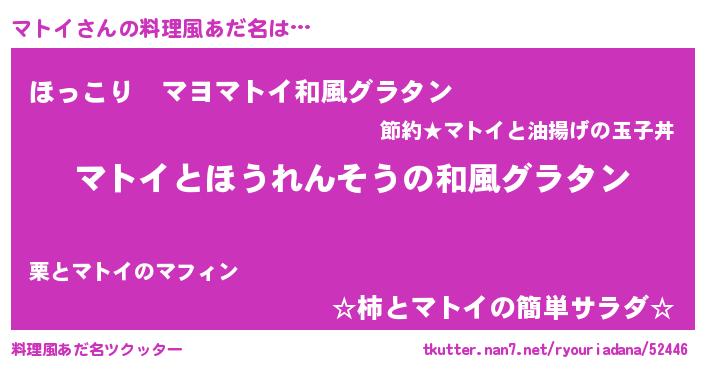 | 男性向けラノベタイトル風あだ名 | 『転生したらマトイだった件』 |