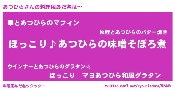 | 胡散臭い通販商品みたいなあだ名 | 『必ず成功する水晶球…その名も「あつひら」』 |