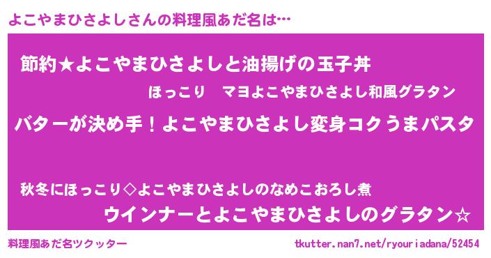 | ヘコむあだ名 | 『よこにゅー』『豆乳』『よこぷりん』 |