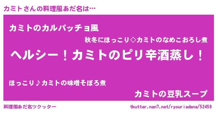 | 男性向けラノベタイトル風あだ名 | 『Re:カミトから始める異世界生活』 |