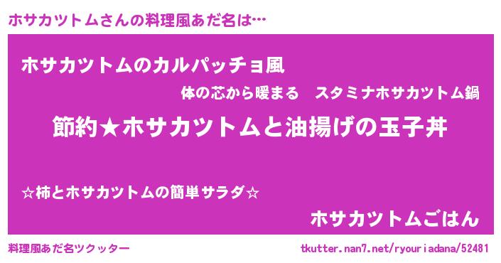 | 男性向けラノベタイトル風あだ名 | 『ホサカツトムアートオンライン』 |