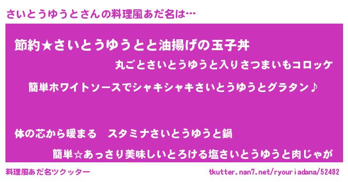 | 男性向けラノベタイトル風あだ名 | 『さいとうゆうとの嫁は女の子じゃないと思った?』 |
