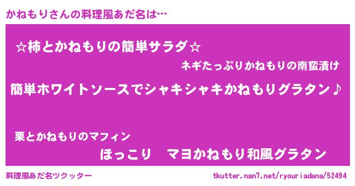 | 男性向けラノベタイトル風あだ名 | 『かねもりの嫁は女の子じゃないと思った?』 |