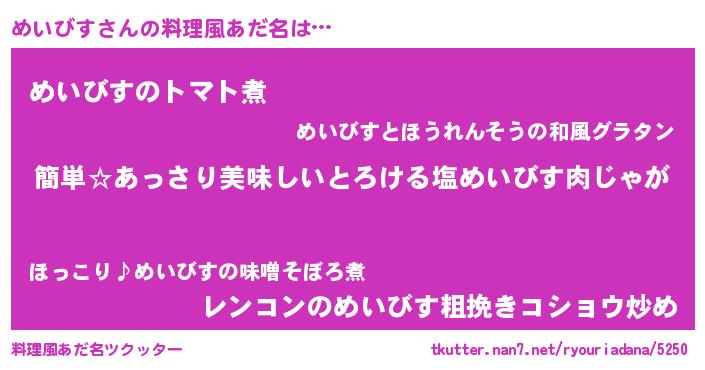 | 意味不明あだ名 | 『永久保存めいびす』『自称めいびす』 |