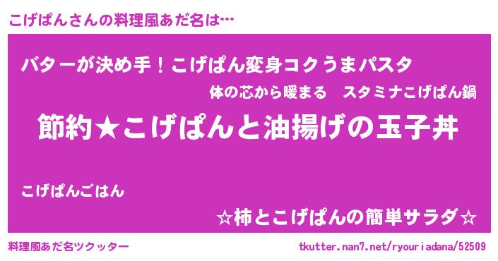 | 意味不明あだ名 | 『ペロリンこげぱん』『自称こげぱん』 |