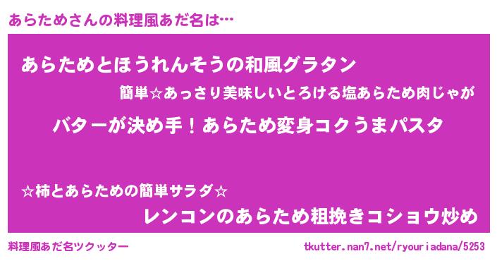 | ヘコむあだ名 | 『あらため(震え声)』『あらにゅー』 |
