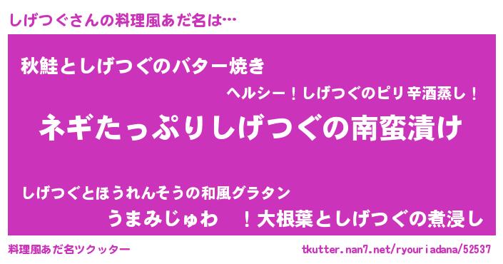 | 意味不明あだ名 | 『ペロリンしげつぐ』『永久保存しげつぐ』 |