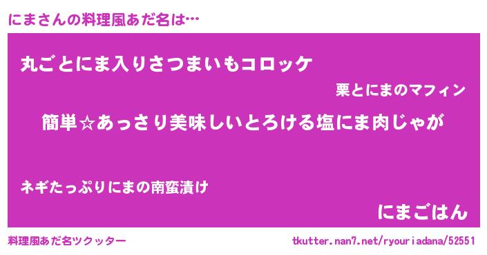| 意味不明あだ名 | 『永久保存にま』『住所不定無職にま(98歳)』 |