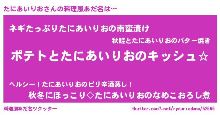 | 女子向けラノベタイトル風あだ名 | 『たにあいりおの卵を拾いまして』 |