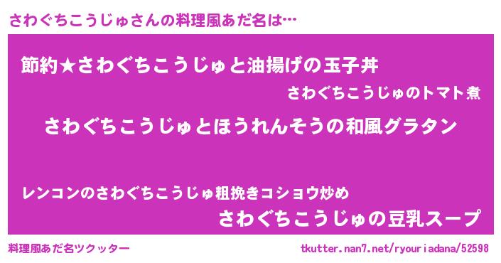 | 男性向けラノベタイトル風あだ名 | 『転生したらさわぐちこうじゅだった件』 |