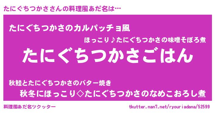 | 恥ずかしいあだ名 | 『プリティーたにぐちつかさ』『たにちん』 |
