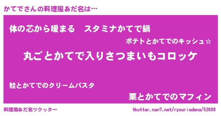 | ヒーロー風カッコイイあだ名 | 『仮面カテダー』『ウルトラかてでマン』 |