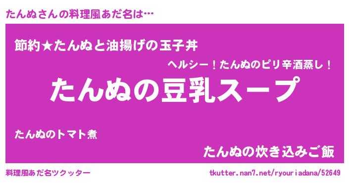 | 胡散臭い通販商品みたいなあだ名 | 『信頼と実績のサプリメント…その名も「たんぬ」』 |
