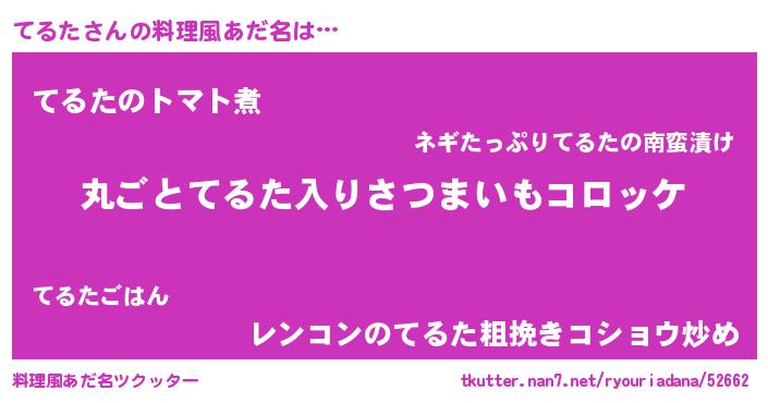 | 男性向けラノベタイトル風あだ名 | 『魔弾の王とてるた』『テルタスレイヤー』 |