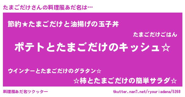 | 女子向けラノベタイトル風あだ名 | 『たまごだけの卵を拾いまして』 |