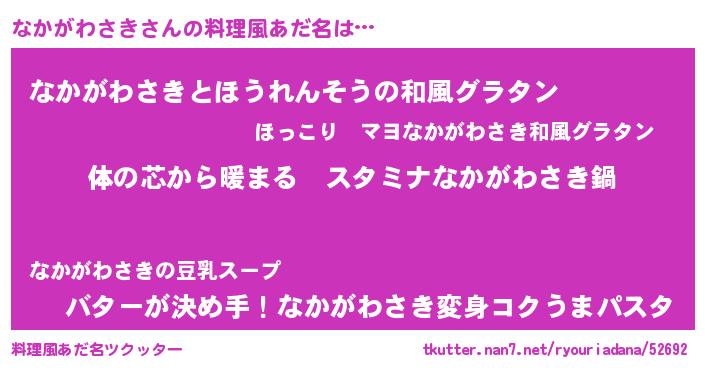 | 男性向けラノベタイトル風あだ名 | 『やはりなかがわさきの青春ラブコメはまちがっている 』 |