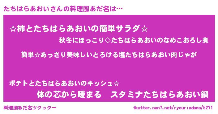 | ヘコむあだ名 | 『たちはらあおい(震え声)』『牛乳』 |