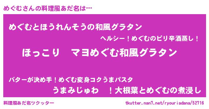 | ヘコむあだ名 | 『酢こんぶ』『めぐを』『めぐにー』 |
