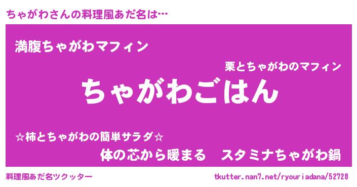 | 胡散臭い通販商品みたいなあだ名 | 『絶対に幸福をもたらす健康食品…その名も「ちゃがわ」』 |