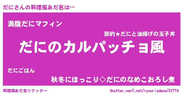 | 意味不明あだ名 | 『住所不定無職だに(65歳)』『永久保存だに』 |