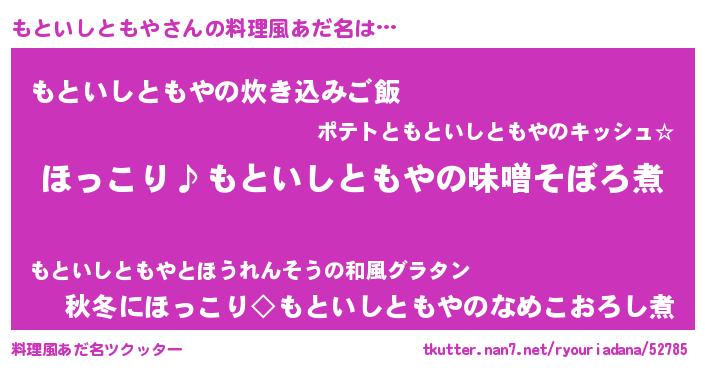 | 胡散臭い通販商品みたいなあだ名 | 『必ず成功するブレスレット…その名も「もといしともや」』 |
