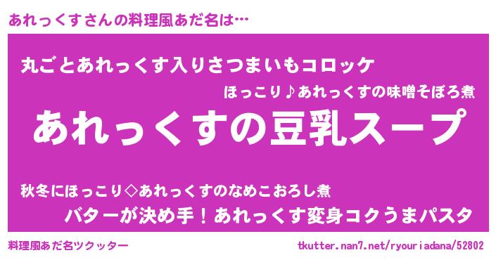 | 女子向けラノベタイトル風あだ名 | 『あれっくすは平凡を望む』 |