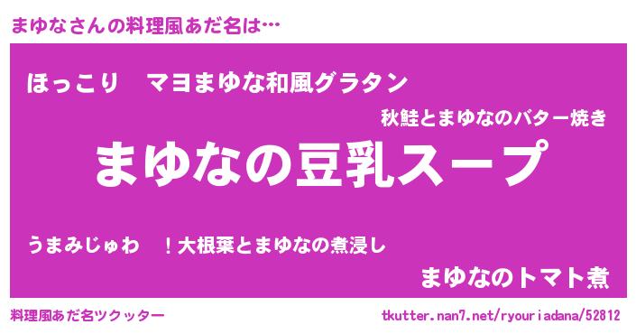 | ヘコむあだ名 | 『まゆ太郎』『まゆな(爆)』 |
