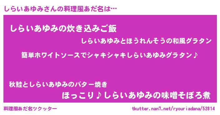 | 胡散臭い通販商品みたいなあだ名 | 『全米が絶賛したサプリメント…その名も「しらいあゆみ」』 |