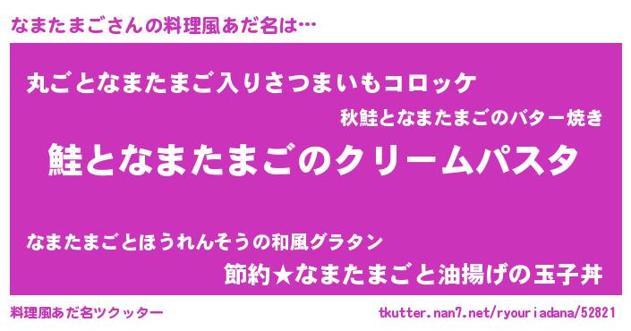 | 男性向けラノベタイトル風あだ名 | 『ノーゲーム・ノーナマタマゴ』 |