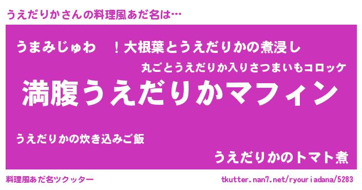 | 胡散臭い通販商品みたいなあだ名 | 『絶対に幸福をもたらす水素水…その名も「うえだりか」』 |