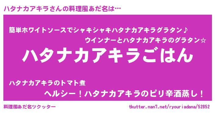 | 肩書あだ名 | 『ハタナカアキラ大将』 |